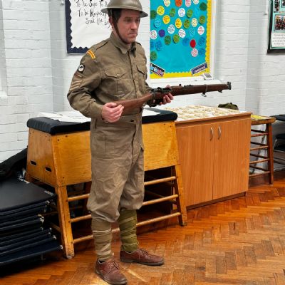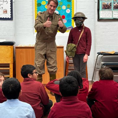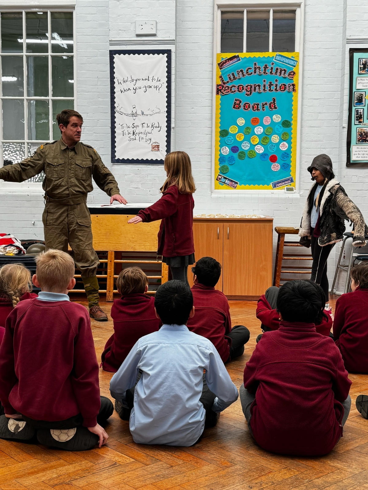 Our Year 6 pupils recently had the extraordinary opportunity to step back in time and engage with history in a truly unique way, as we welcomed a World War II soldier to our school. This immersive acting experience allowed them to gain a deeper understanding of the life of a soldier during the tumultuous times of World War II. They learnt about the daily challenges, bravery, and significant roles soldiers played in shaping our history. This visit was not only educational but also a memorable experience that has undoubtedly left a lasting impression on our young learners.