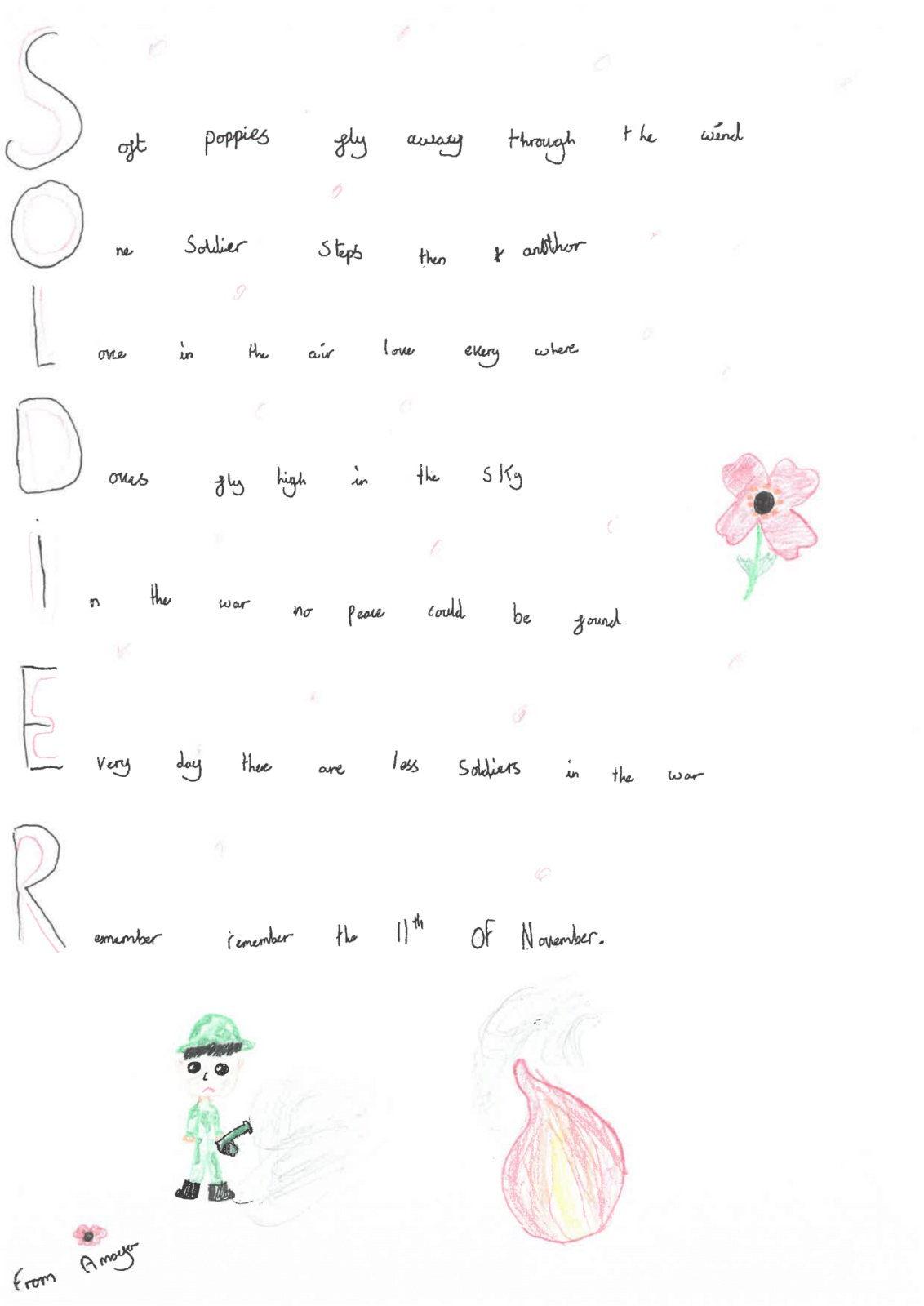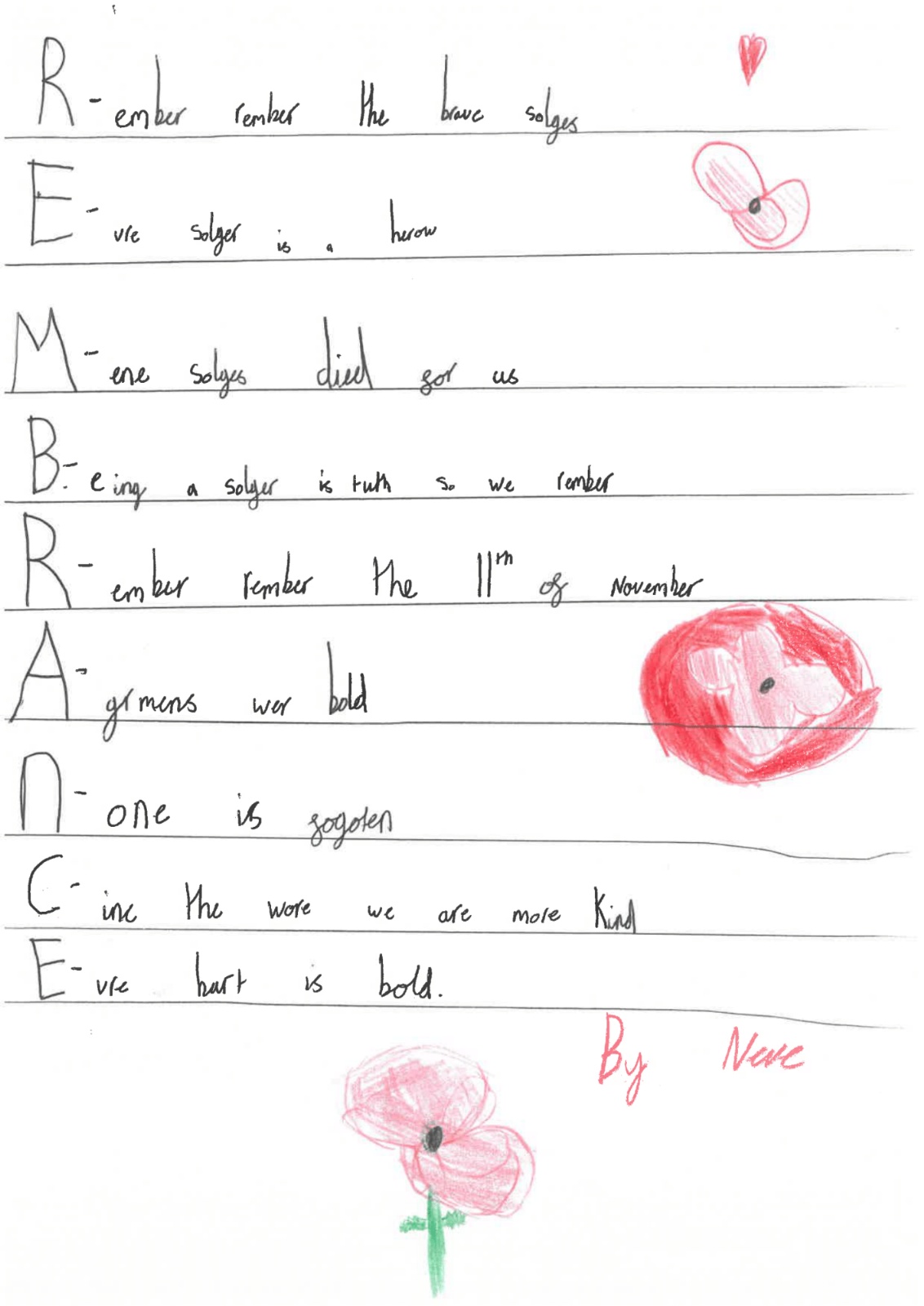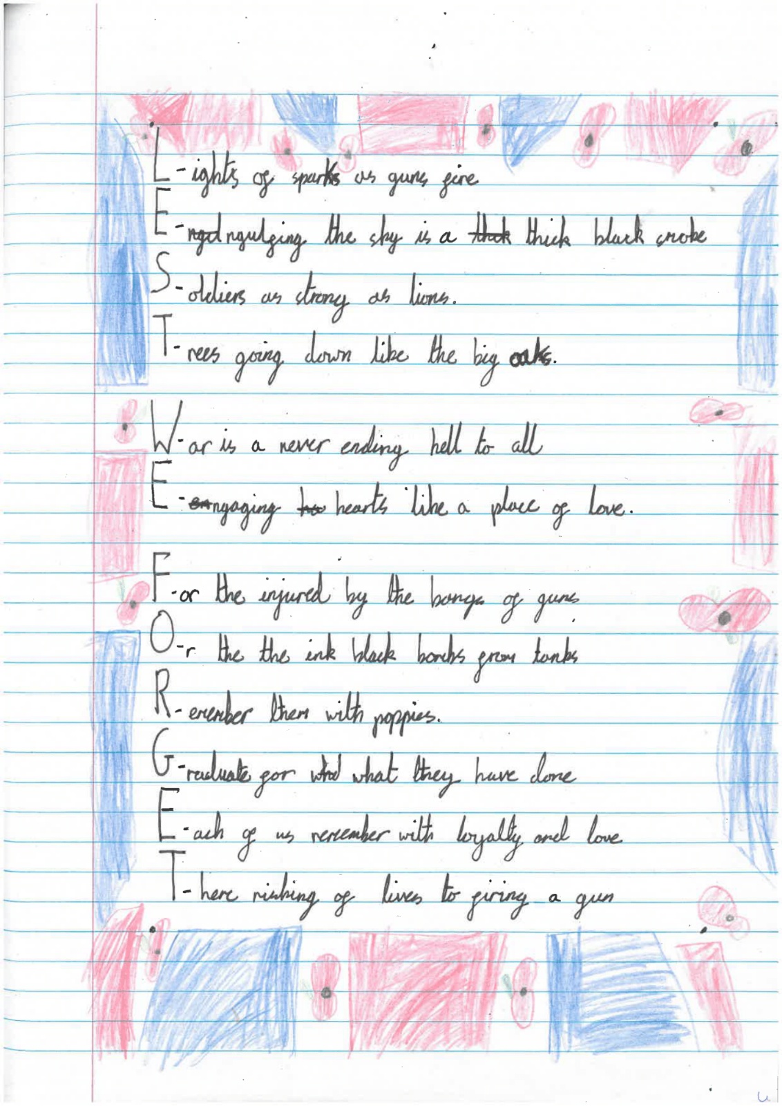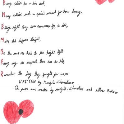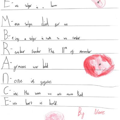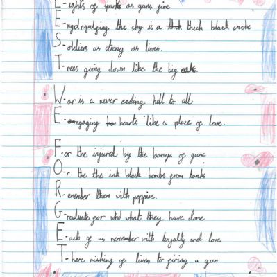 Year 4 wrote acrostic poems on the theme of Lest We Forget.