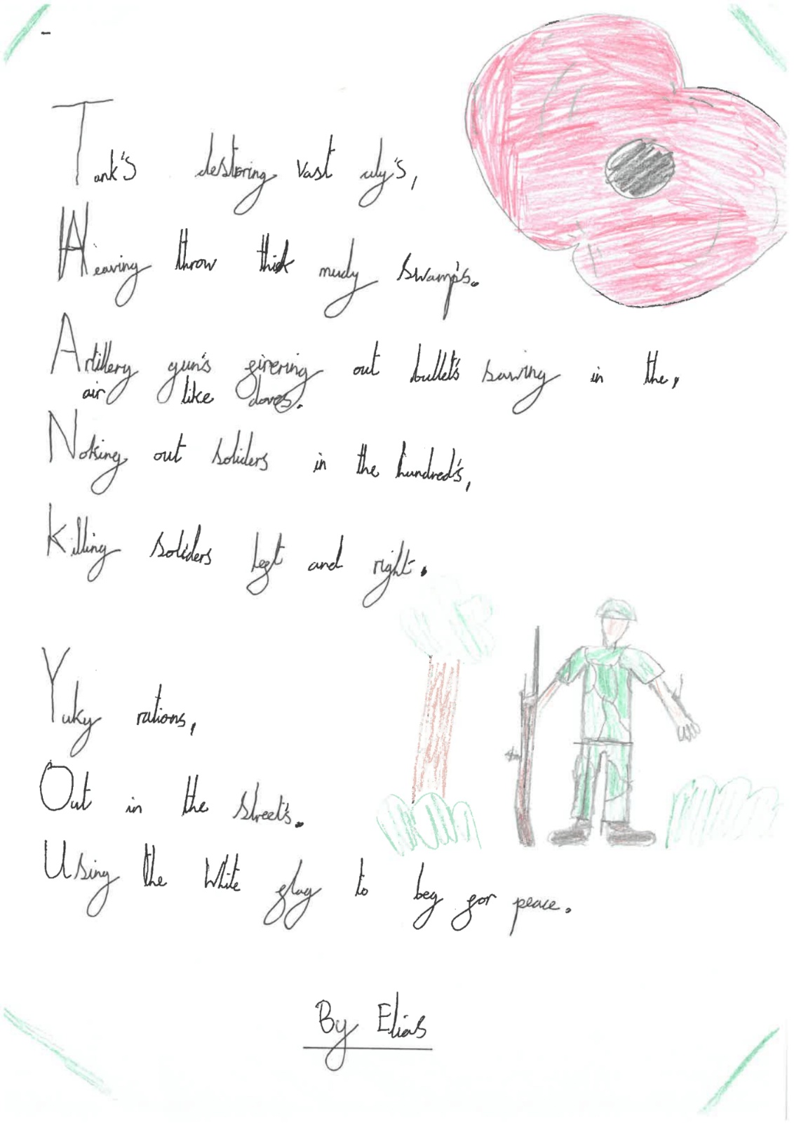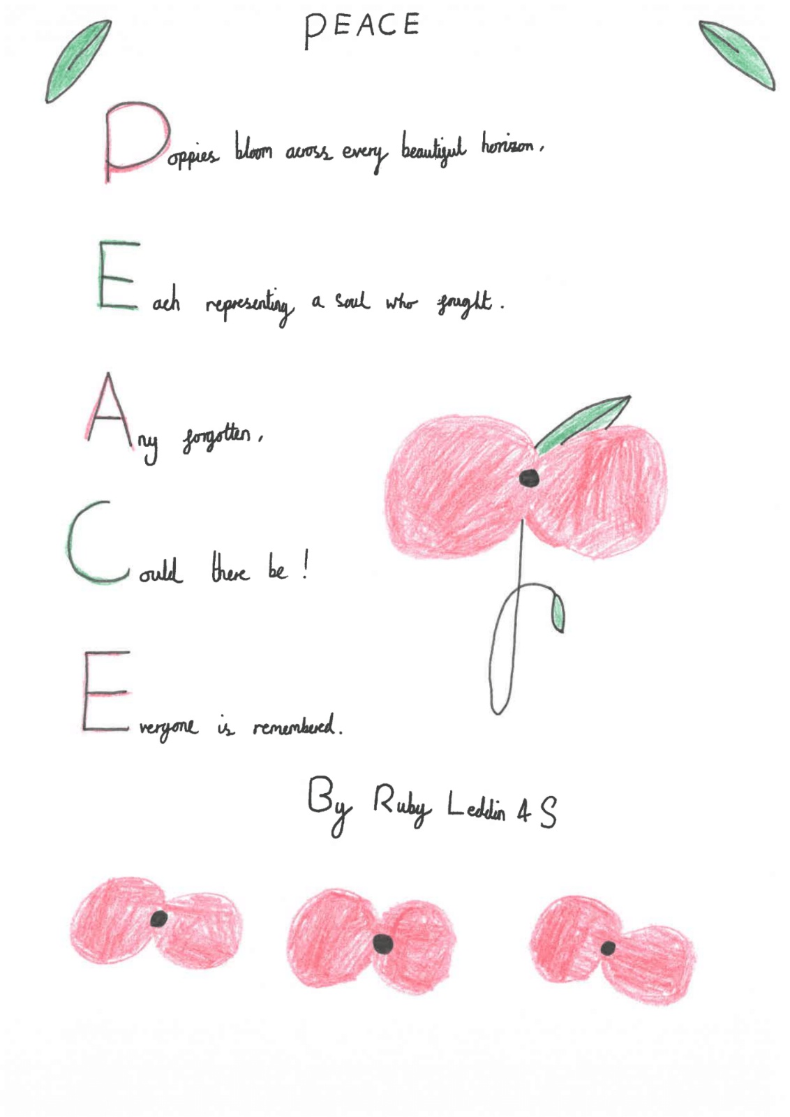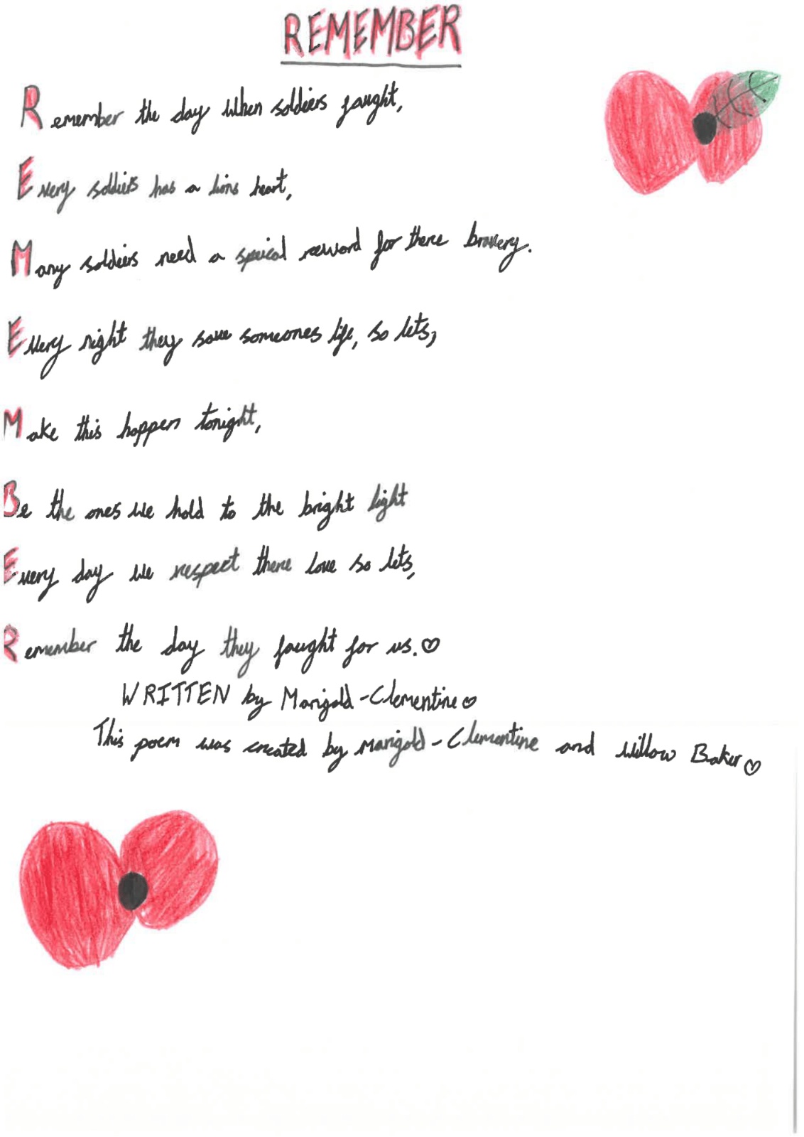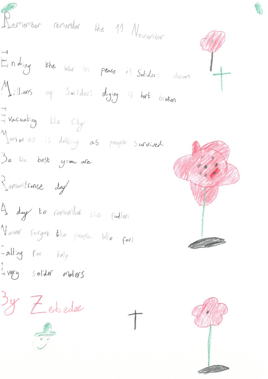 Year 4 wrote acrostic poems on the theme of Lest We Forget.