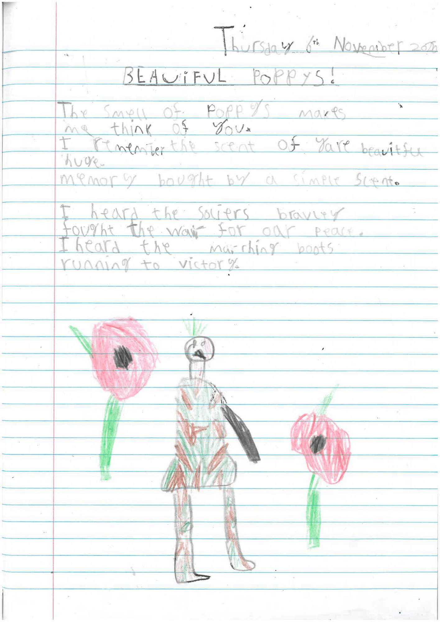 Year 3 wrote rhyming poems around the theme Lest We Forget.